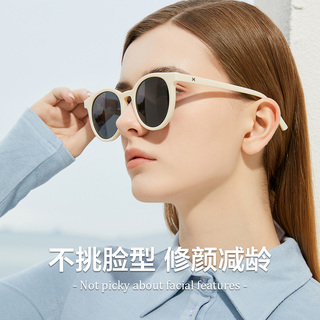LOHO小圆框2026新款白框墨镜女偏光高级感太阳眼镜时尚潮流显小脸