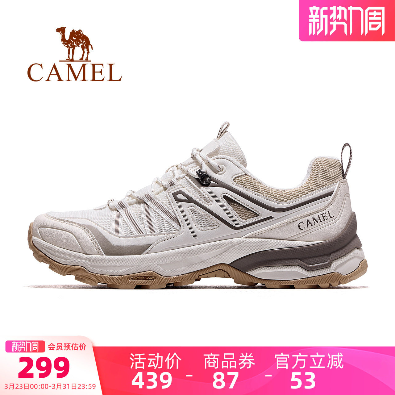 :原价439元,现在领取170元优惠券,预估到手269元,【骆驼】春夏季透气防滑耐磨登山鞋;骆驼凯旋男鞋登山鞋,2026春夏季透气防滑耐磨缓震设计,适合徒步户外运动,男女皆宜,舒适耐用,轻松应对各种地形!