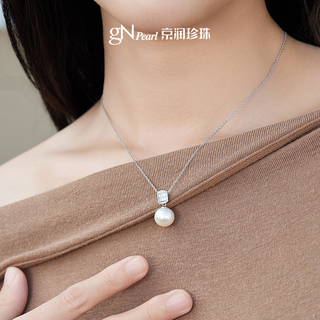 京润珍珠 诗真 925银淡水有核珍珠吊链9-12mm圆形白色项链送女友D
