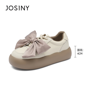 卓诗尼女鞋清仓小白鞋女百搭舒适单鞋系带圆头休闲板鞋四季通用