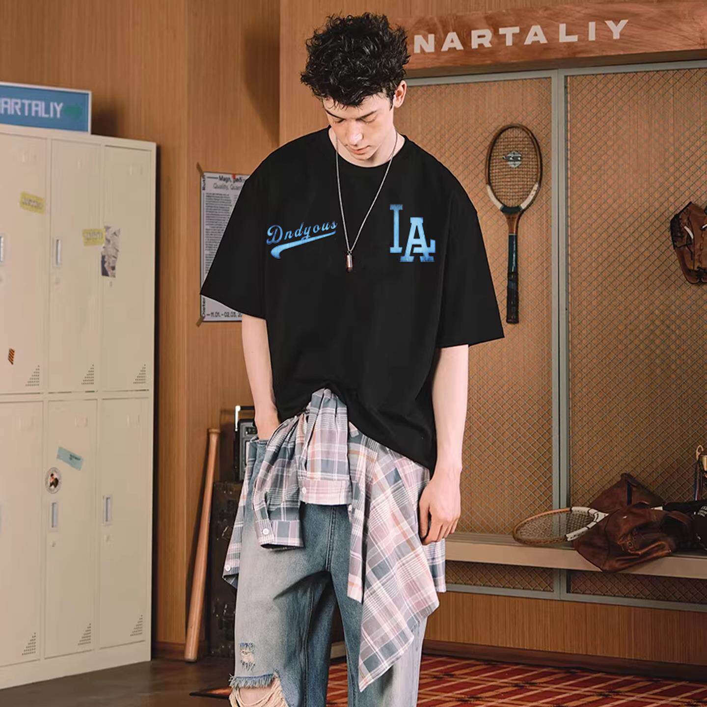 LA官方正品2026新款春夏男女同款纯棉宽松潮牌爆款休闲T恤