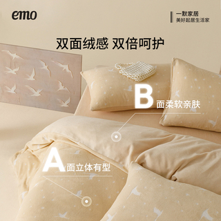 一默牛奶绒四件套飞鸟集珊瑚绒加绒被套床单保暖套件双面绒秋冬季
