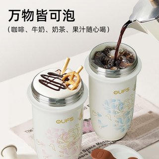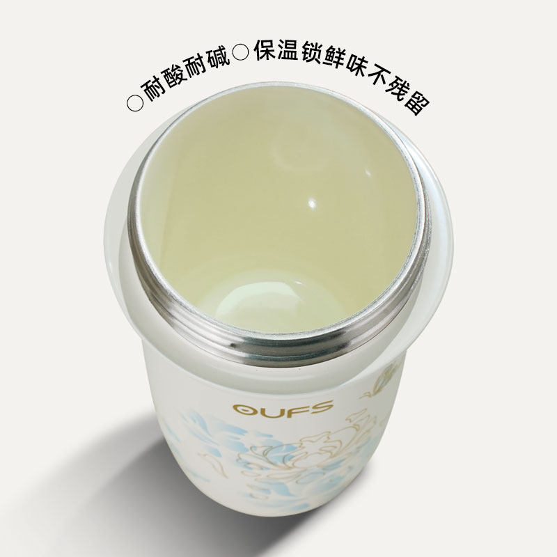 OUFS欧梵森珐琅内胆保温杯大容量咖啡水杯女生便携高颜值吸管杯子