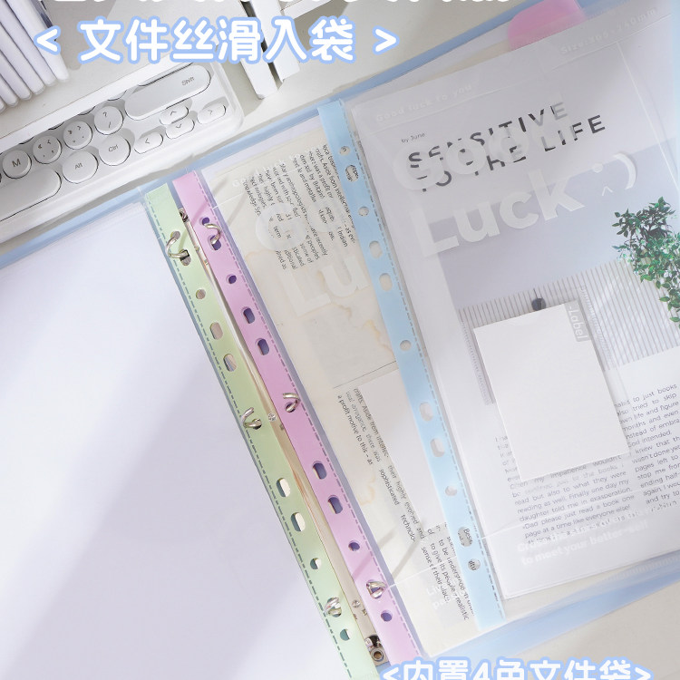 齐心活页文件夹3孔夹A4插页透明袋资料册试卷收纳袋学生用资料夹多层卷子资料收纳册孕检翻页收集内置文件袋