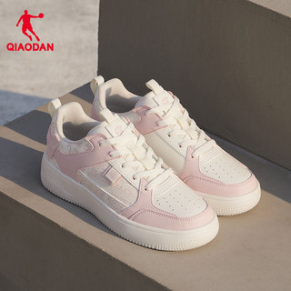 乔丹板鞋新款小白鞋休闲鞋撞色运动鞋女皮面粉色增高学生正品鞋