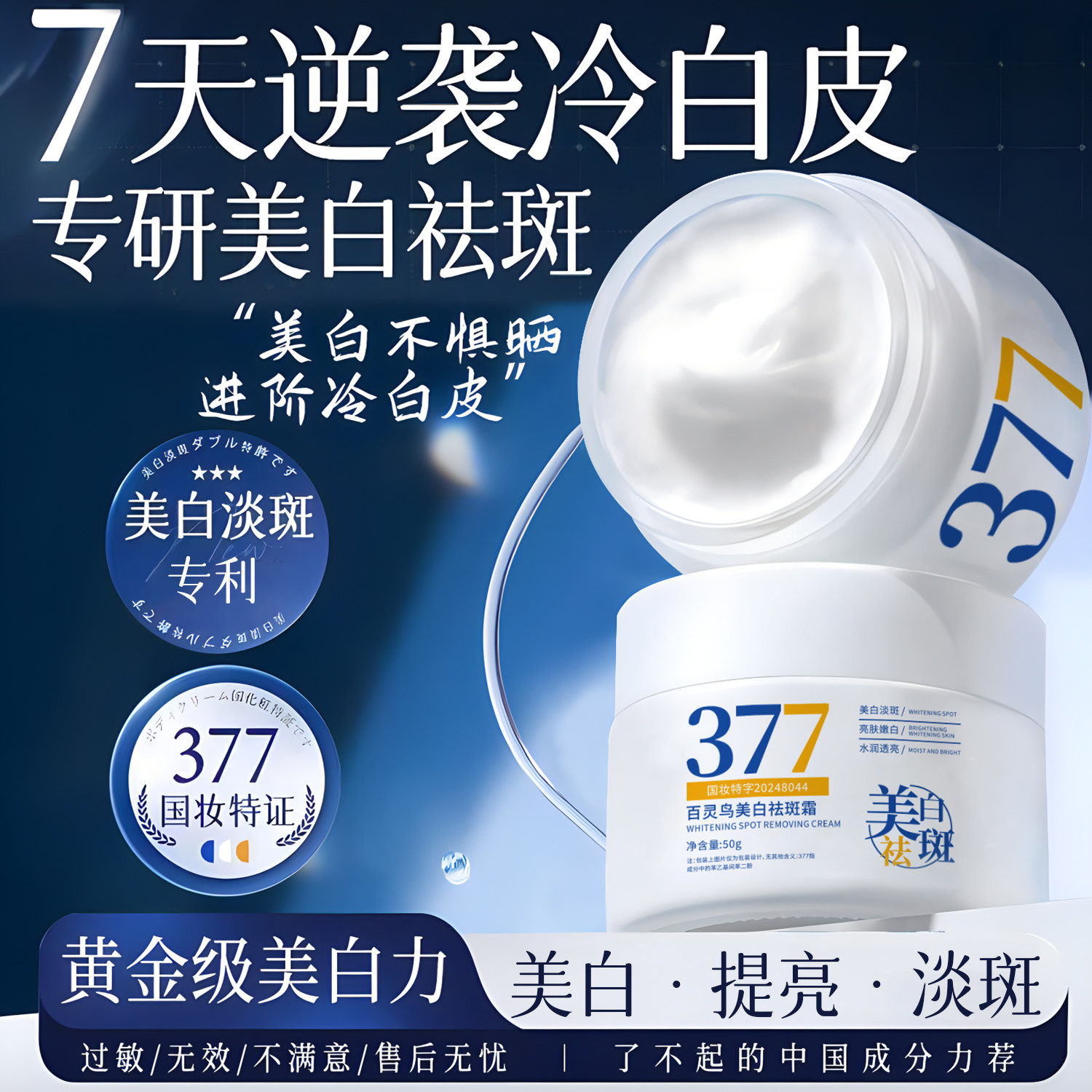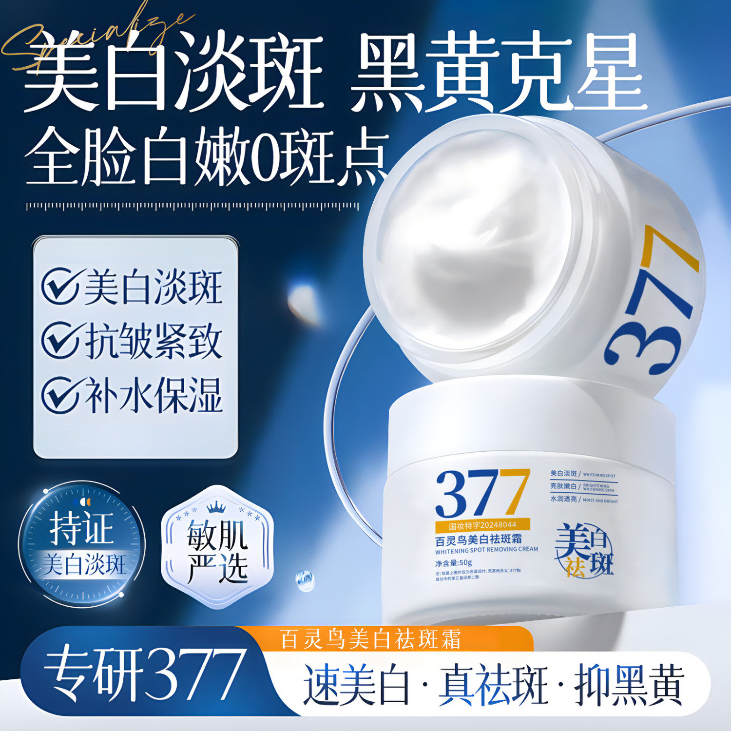 百灵鸟377美白祛斑面霜去黄褐斑雀斑淡化斑滋润补水保湿秋冬男女