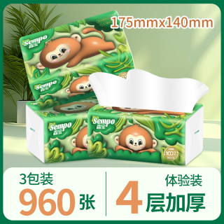 森宝抽纸小猴纸4层加厚整箱实惠餐巾纸卫生纸家用纸巾24包面巾纸