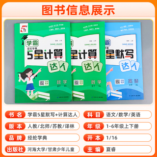 2026春小学五星学霸默写计算达人一二三四五六年级下册上册语文数学英语人教版北师江苏教版译林计算题专项训练口算天天练能手5星
