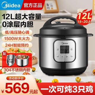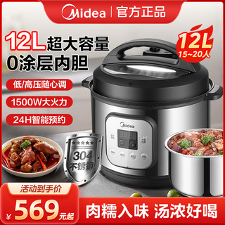 美的电压力锅12升商用大容量超大不锈钢高压饭锅电高压锅官方正品