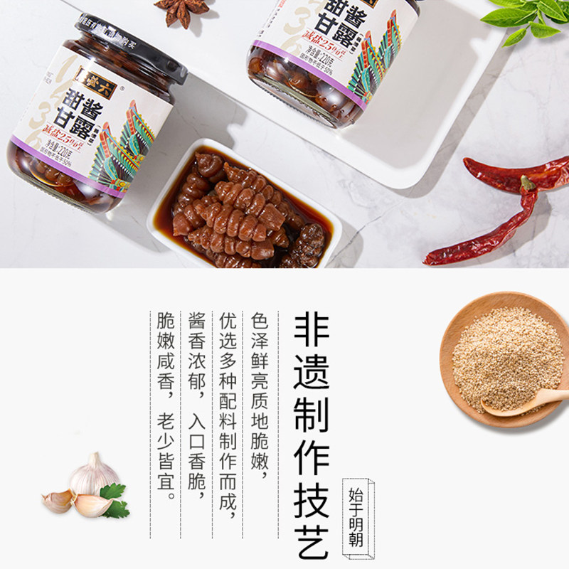六必居减盐甜酱甘露腌酱地环螺丝菜宝塔菜地葫芦早餐下饭酱腌小菜