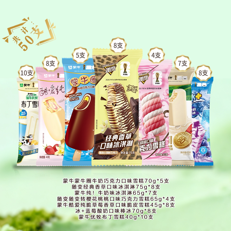 50支】蒙牛冰淇淋经典香草樱花桃桃蒙牛纯蒙牛圈蓝莓布丁棒冰雪糕