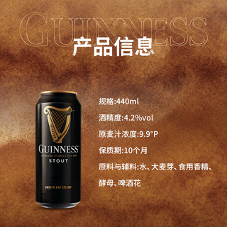 健力士黑啤酒440ml*24听世涛精酿爱尔兰风味9.9°P罐装整箱批发