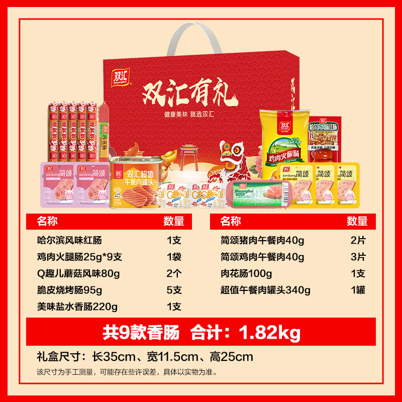 :原价59.9元,现在领取10元优惠券,预估到手49.9元,【年货礼盒】双汇王中王火腿肠礼盒1.82kg;双汇王中王年货礼盒,红色喜庆包装,内含多款明星产品,走亲访友、员工福利、拜年送礼倍有面!国民品牌品质保障,年货必囤货!