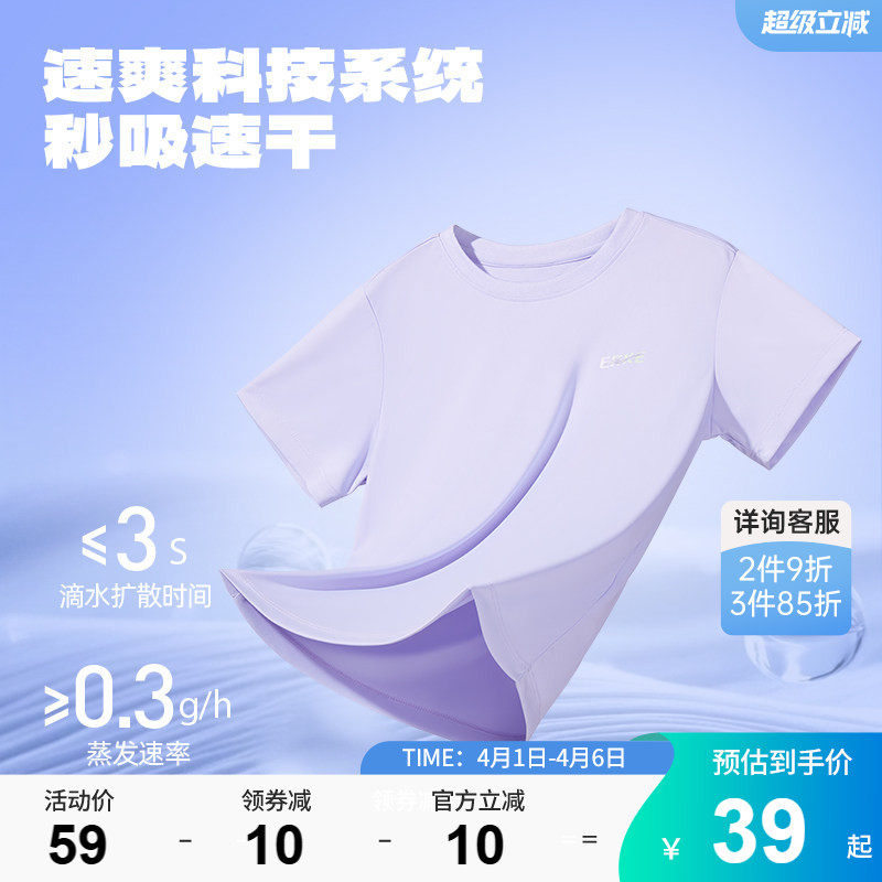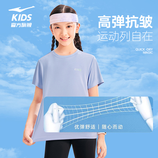 鸿星尔克童装女童短袖T恤儿童运动防晒速干夏季大童透气上衣夏装