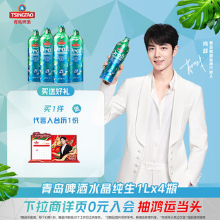 青岛啤酒鲜活21天水晶纯生1L*4桶礼盒装肖战推荐