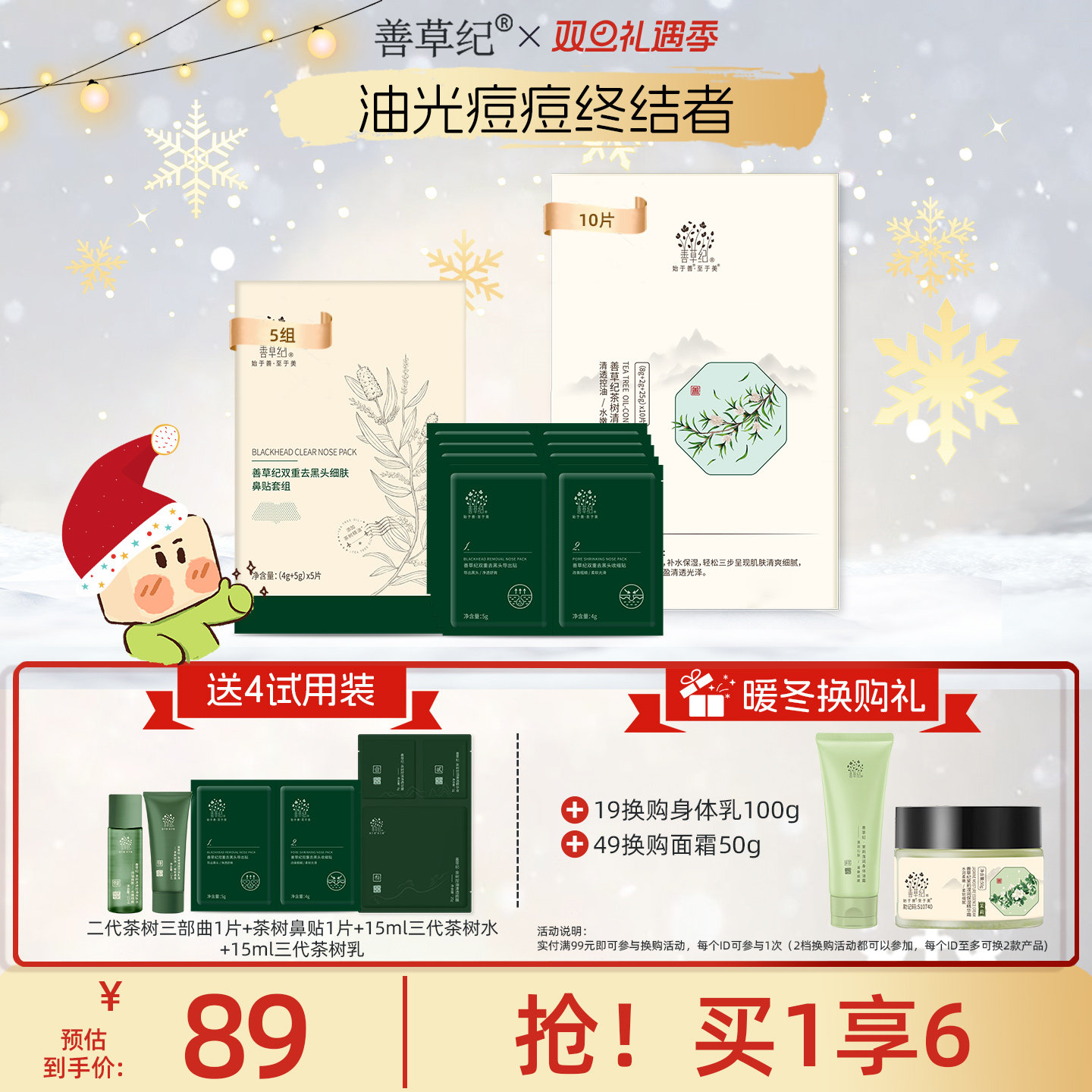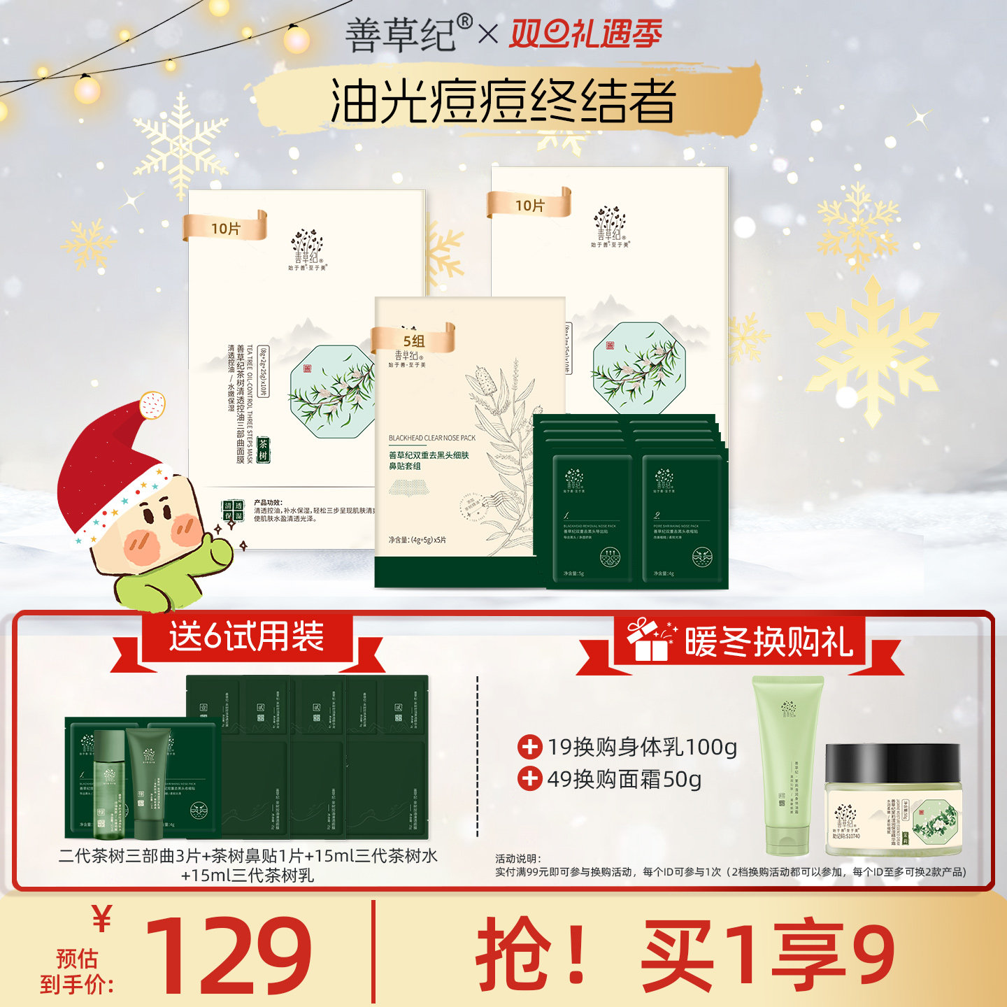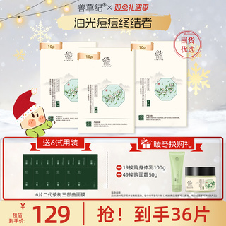 善草纪二代茶树三部曲面膜清洁控油补水保湿泥膜精华面膜三合一