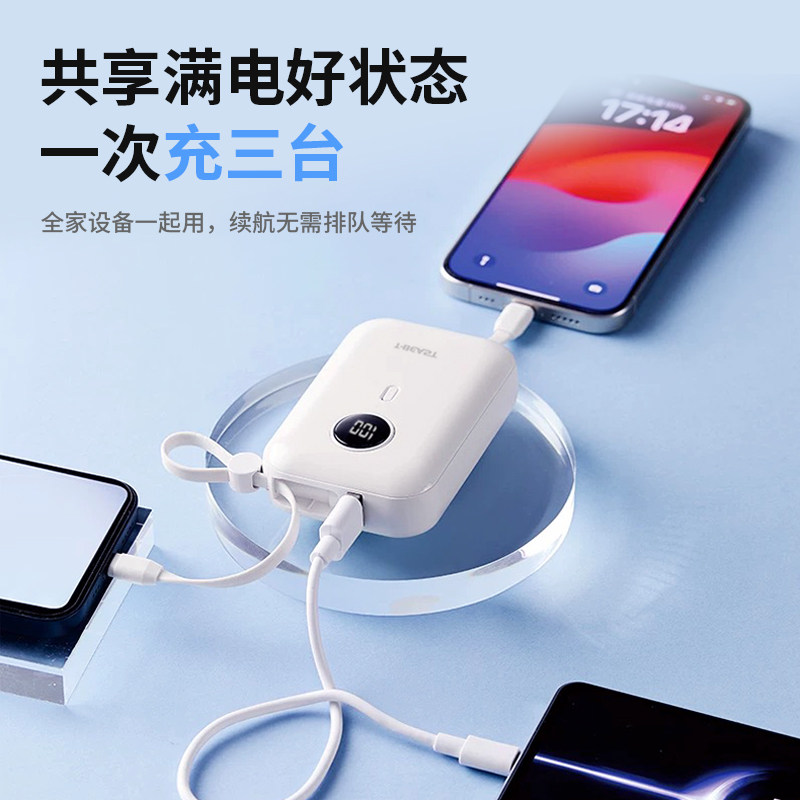 【充电宝3C认证可上飞机】拾光兽T-BEAST超迷你小巧便携自带线大容量10000毫安移动电源适用苹果安卓