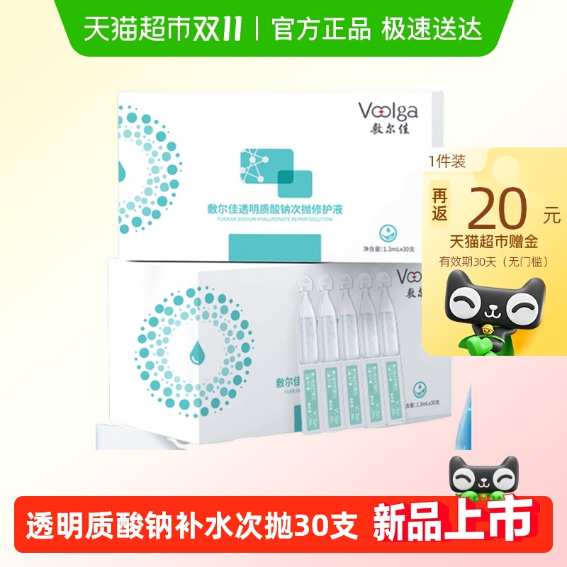 :原价168元,现在领取5元优惠券,预估到手163元,1.3/只!敷尔佳透明质酸钠次抛30支;【抵扣淘金币4.68,88vip ,领美食健康券 15,叠加消费券 最 低63,猫超限时红包 到手61 反 20 猫卡 到手 41 1.3/只,拍就赠多元益生面膜】精简成分高效护肤[\u1f64b][\u1f3fb]♂日常补水、屏障修护、妆前打底都[\u1f251]次抛设计很方便~