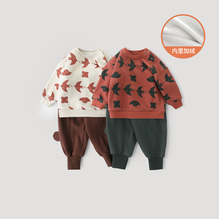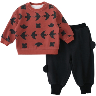 宝宝加绒卫衣套装秋冬季女童加厚保暖冬装男宝周岁礼服儿童新年服