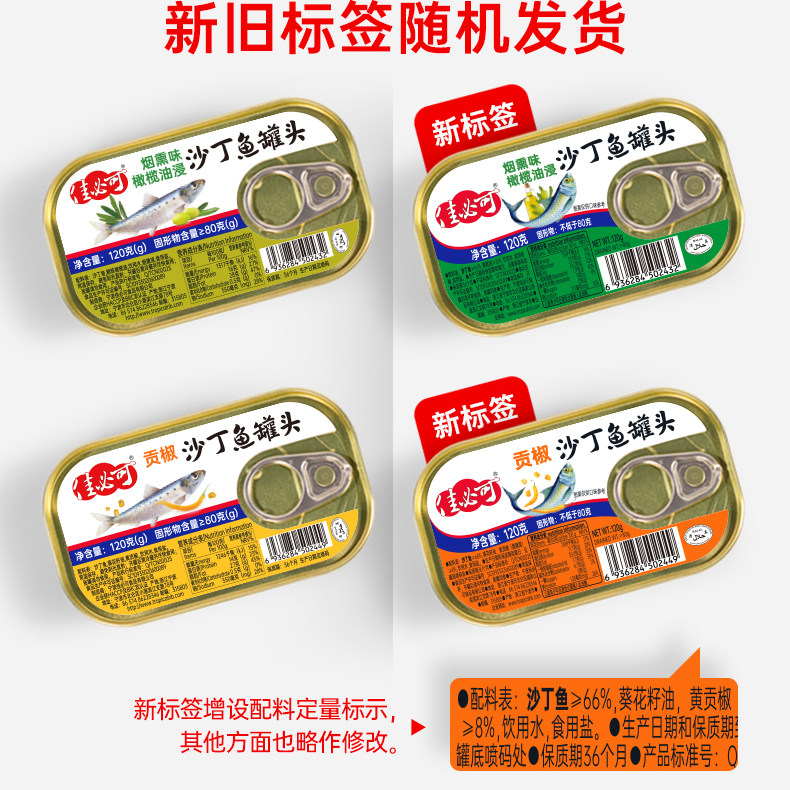 4罐佳必可沙丁鱼罐头橄榄油浸贡椒味开罐即食下饭菜海鲜熟食速食