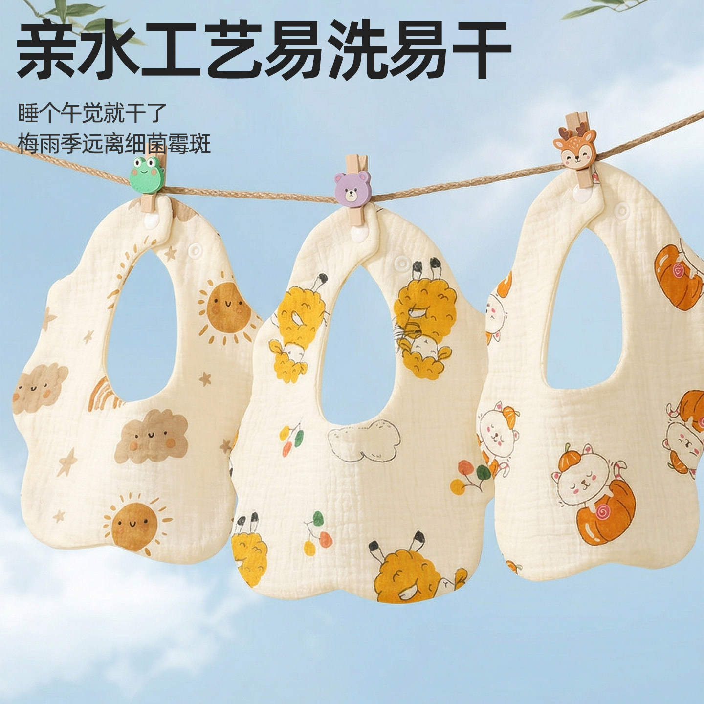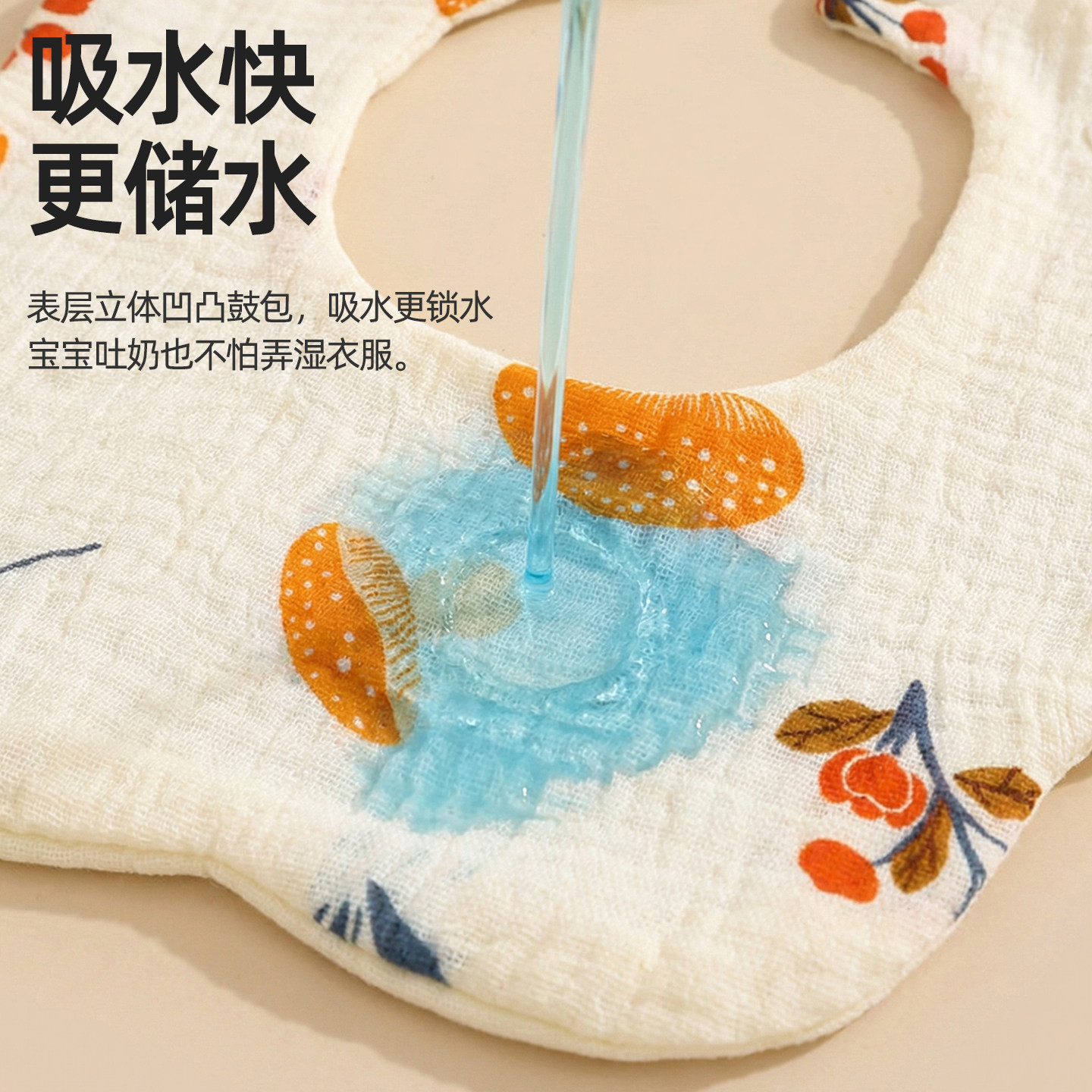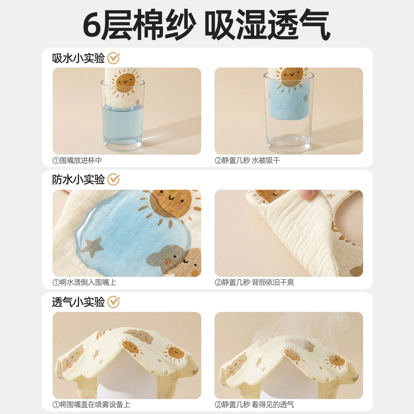 婴儿围嘴a类全棉新生儿口水巾防吐奶360°旋转婴幼儿六层纯棉纱
