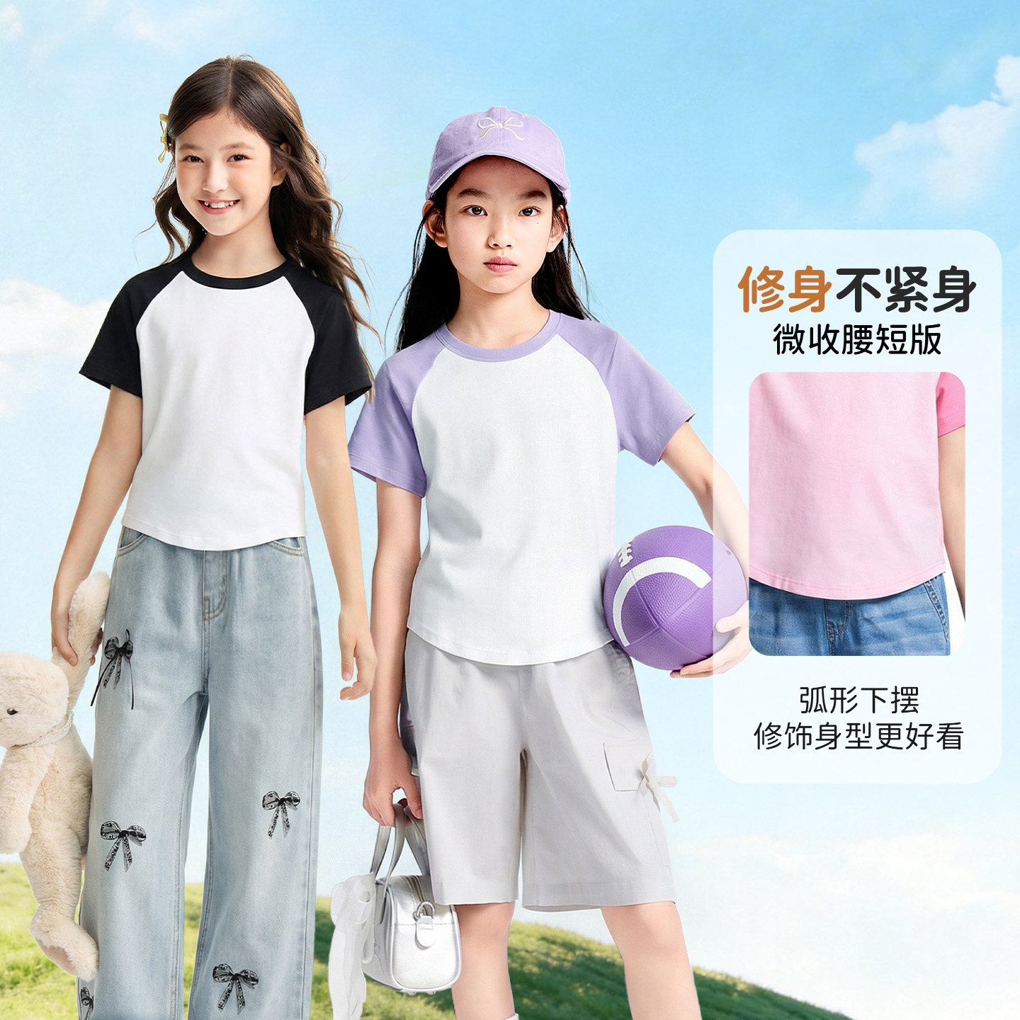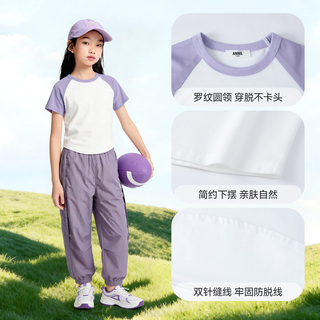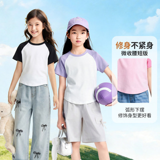 安奈儿童装女童圆领短袖T恤2026夏吸湿插肩袖短版显高宽松亲肤