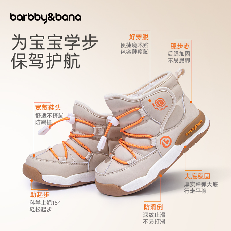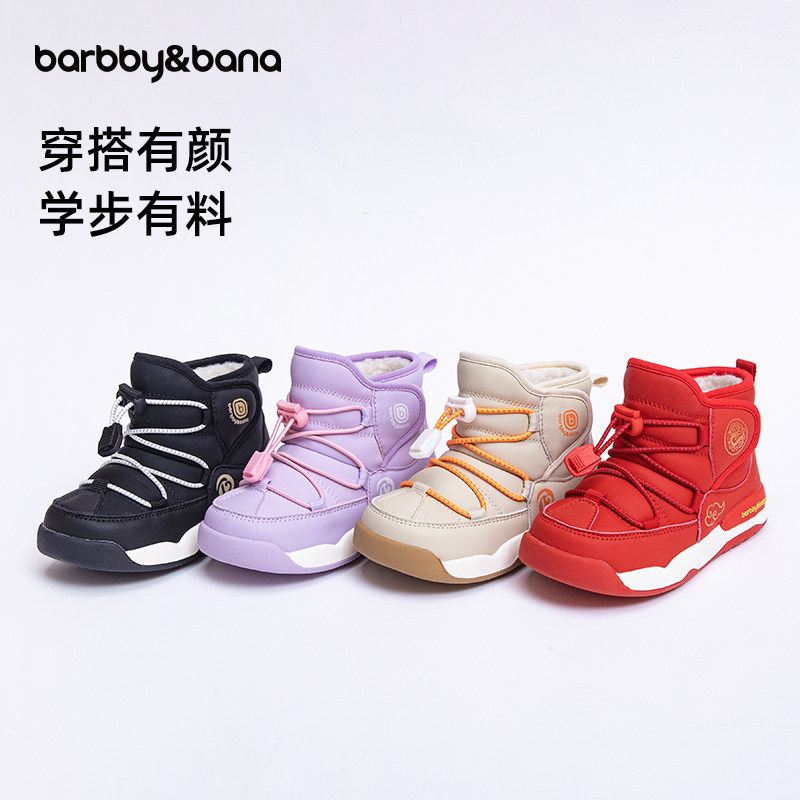 【龙年限定】芭比班纳儿童雪地靴男女童冬季童鞋保暖加绒新年靴子