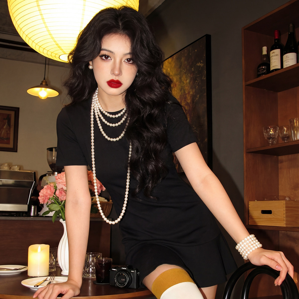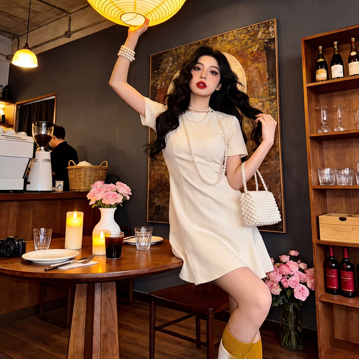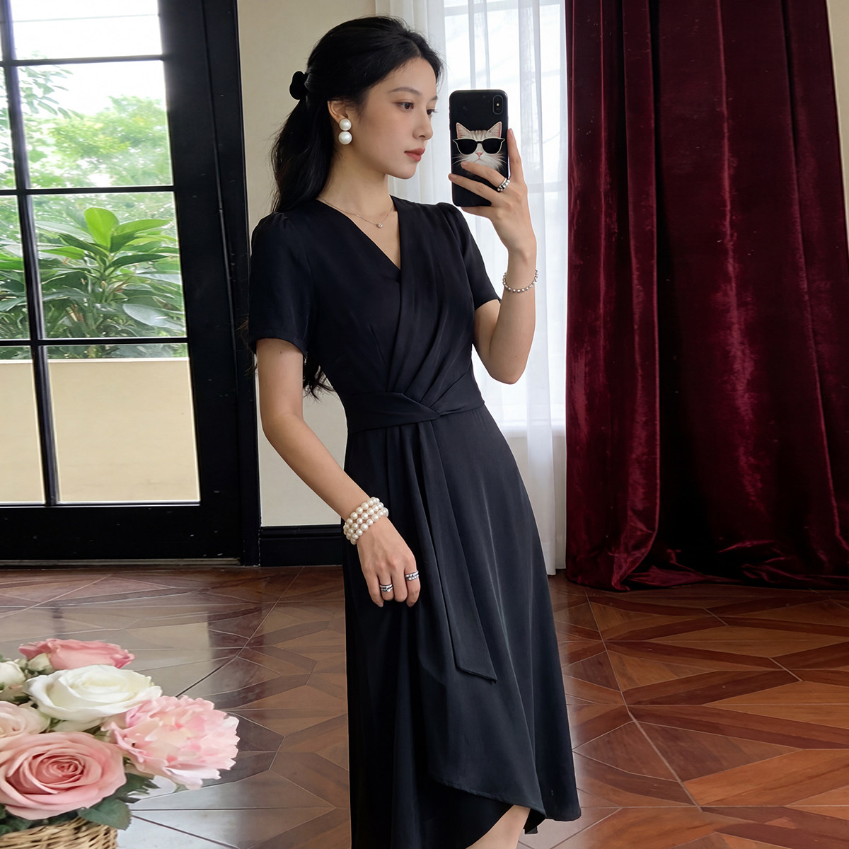 Artsdon/阿仕顿女新款高级感气质名媛洋气显瘦绝美V领收腰连衣裙