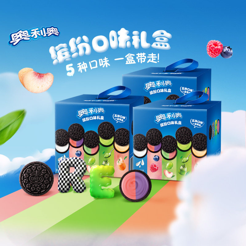 奥利奥夹心饼干五口味388gx3盒共60包120片五彩斑斓夏日限定礼盒
