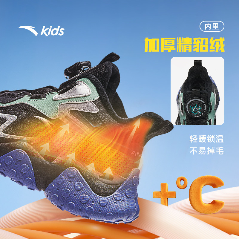 安踏儿童磐石棉鞋男童运动鞋2025冬款防滑大棉鞋加绒保暖雪地棉靴