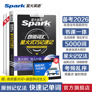 :原价75.8元,现在领取36元优惠券,预估到手39.8元,星火英语四级通关+词汇巧记速记;星火英语四级通关+词汇巧记速记,19套真题+预测,词汇\语法册,视频逐题讲,备考2026含考试真题例句,5000词收录全部大纲词,星火记忆法,由熟记生词根联想,考频乱序,背重点,省时高效,全彩漫画,彩色印刷,漫画图解!