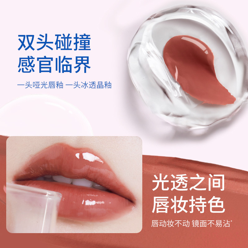 稚优泉双头唇釉镜面水光透明唇蜜丝绒哑光唇泥女口红pt