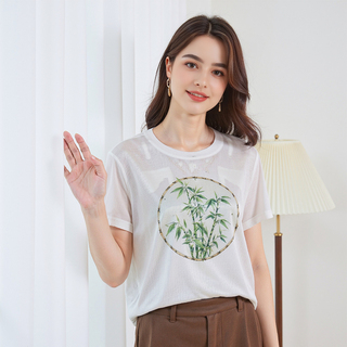 Artsdon/阿仕顿2026夏季新款高端桑蚕丝品质中国风圆领短袖T恤女