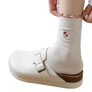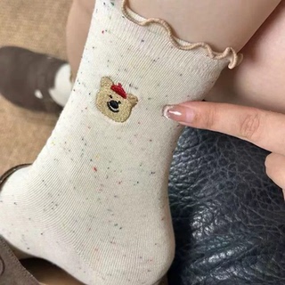 女士新品袜子日系卡通小熊点子纱女中筒袜百搭学院风棉质长袜包邮