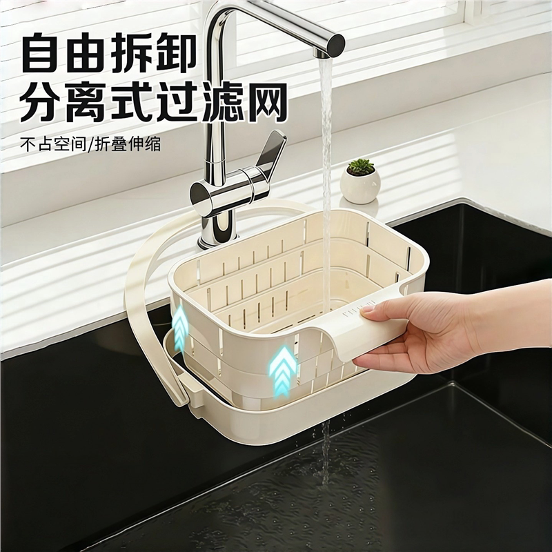 可挂式折叠伸缩水槽沥水篮新款厨房沥水架分离食物过滤倒剩菜神器