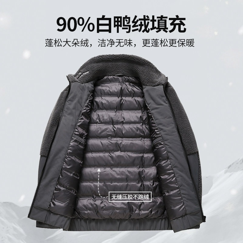 :原价259.2元,现在领取100元优惠券,预估到手159.2元,雪中飞男士颗粒绒羽绒服短加绒外套;礼金39.8,到手159.2元!大牌雪中飞!摇粒绒加羽绒两重保暖!90%白鸭绒填充,颗粒绒面料,抗寒效果更好!!