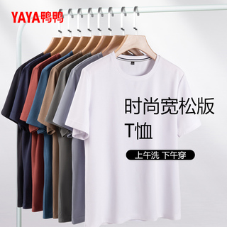 鸭鸭T恤男2025夏圆领短袖白色休闲时尚清爽透气舒适耐磨速干上衣A