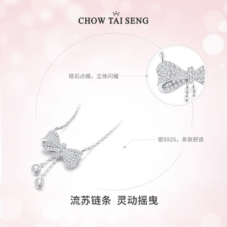 周大生流苏蝴蝶结纯银项链女S925锁骨链小众设计感送女友生日礼物