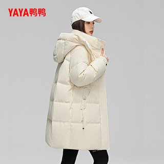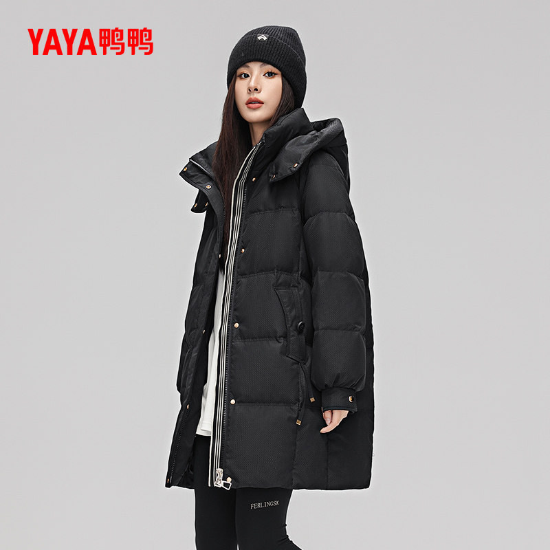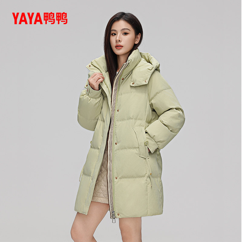 鸭鸭羽绒服女中长款冬季新品时尚百搭连帽鸭绒保暖休闲宽松外套潮