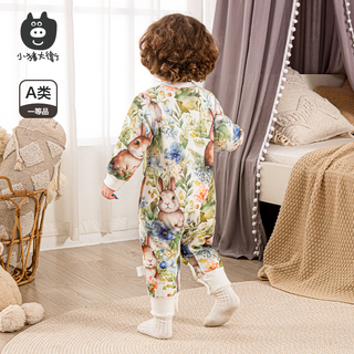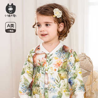 小猪大卫新生儿秋季保暖连体衣男女宝宝卡通印花中开夹棉爬服