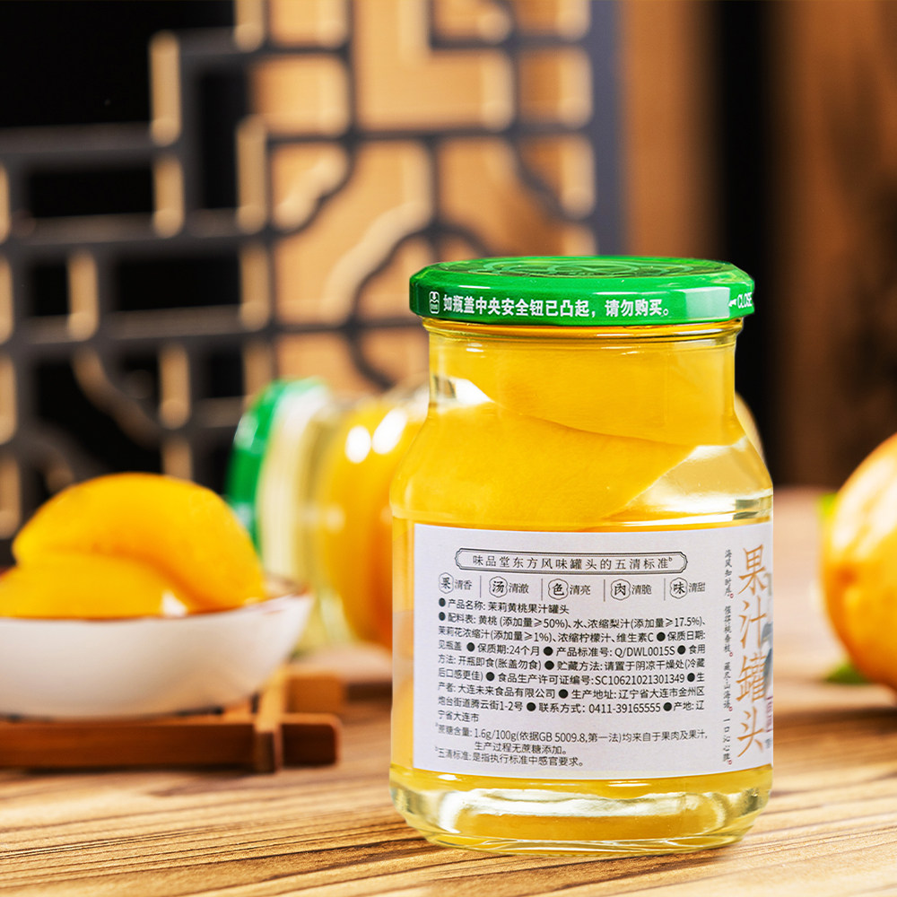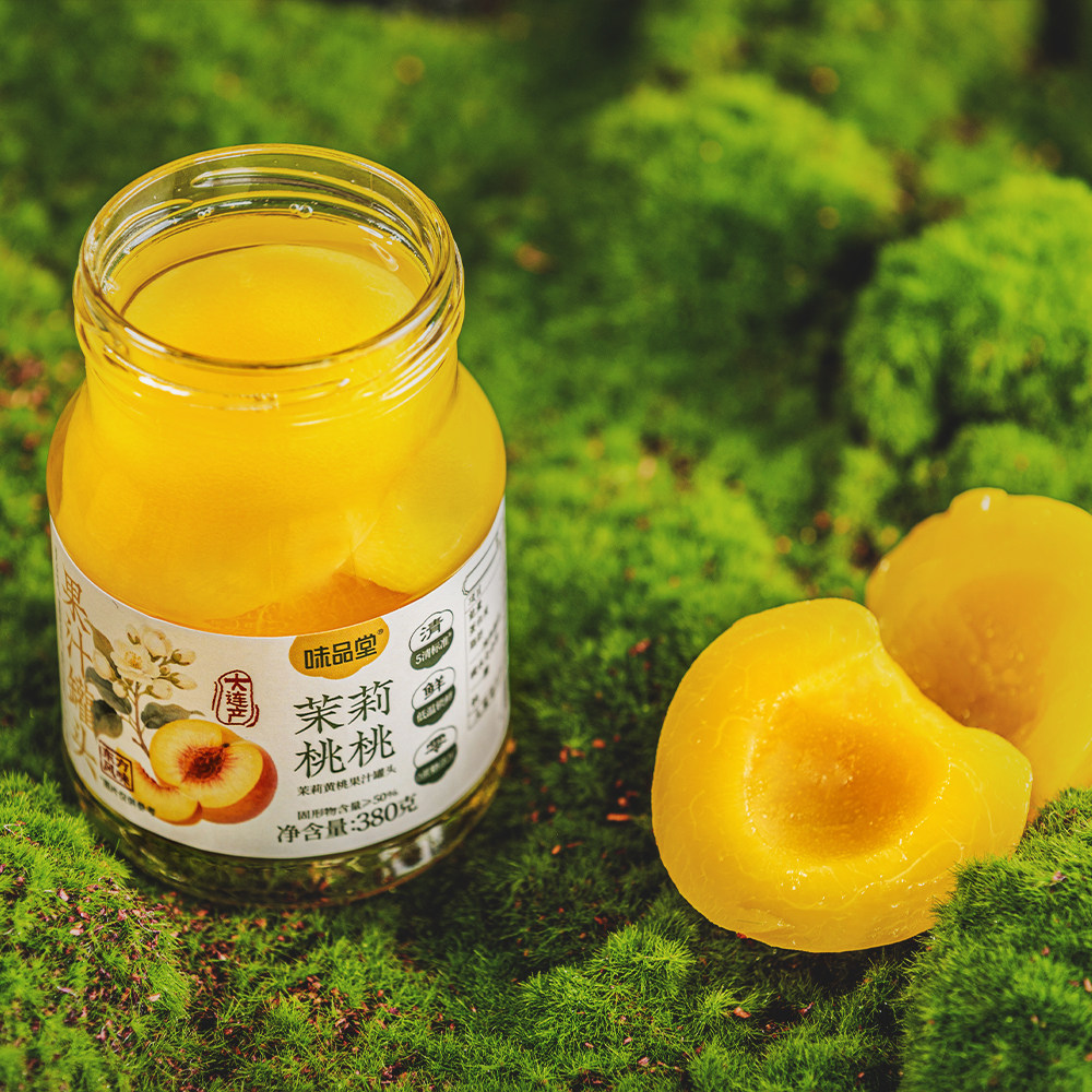 味品堂茉莉黄桃果汁罐头380*4瓶罐装新鲜水果捞轻糖即食休闲零食