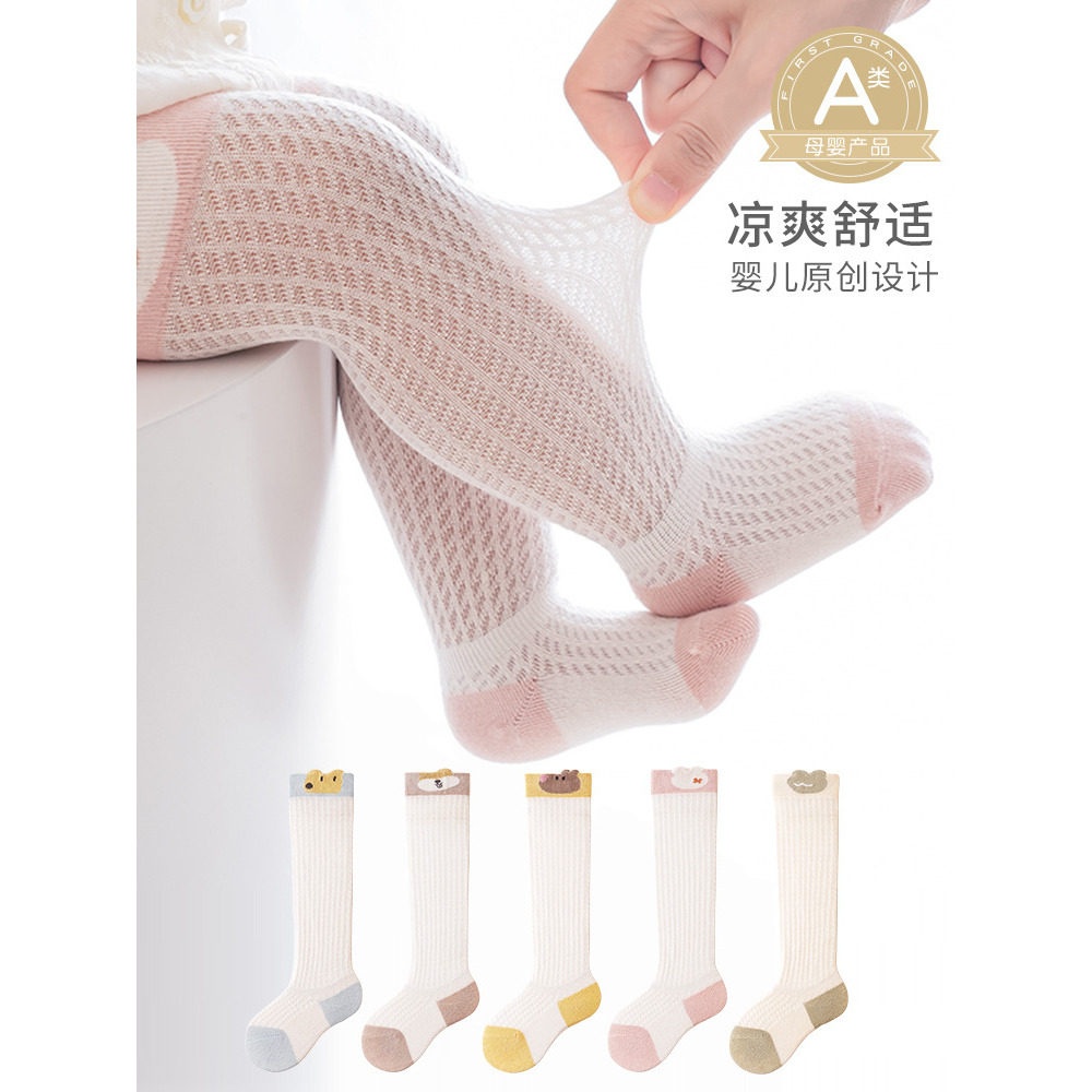 婴儿防蚊袜夏季薄款宝宝网眼透气婴儿过膝袜新生儿网眼长筒袜