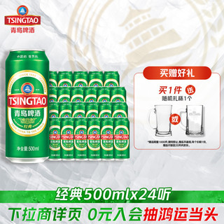 青岛啤酒经典啤酒500ml*24听官方直营绿罐整箱装批发10°P