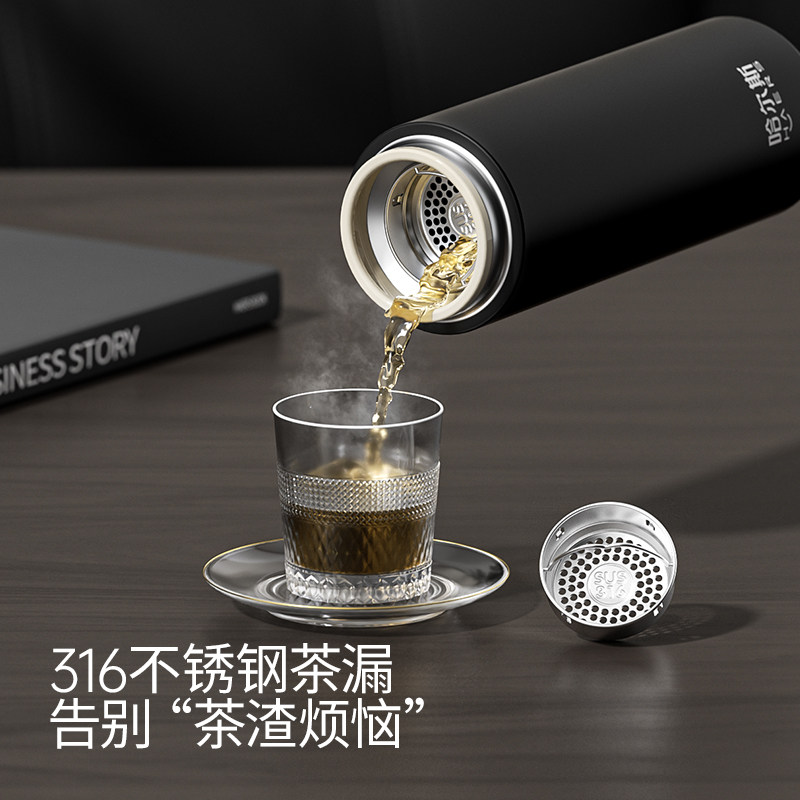 哈尔斯茶水分离保温杯男款车载泡茶水杯女密码不锈钢杯子外出便携