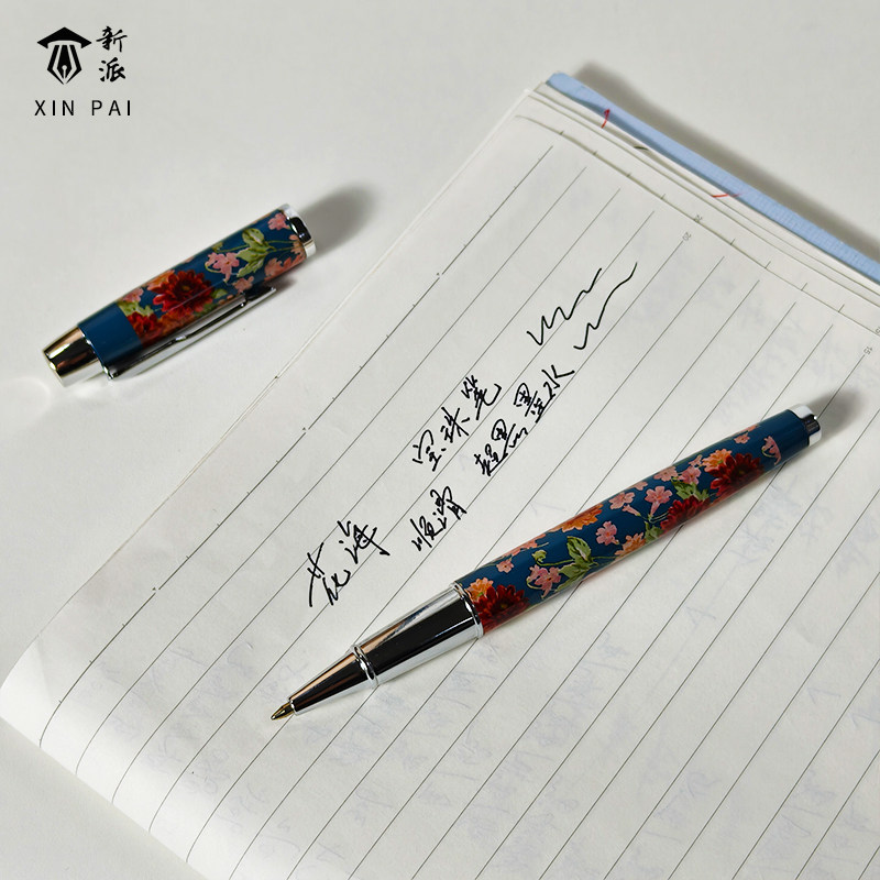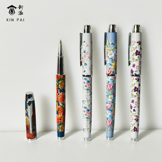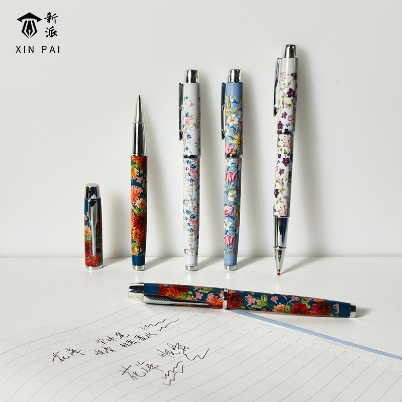 新派彩色花卉宝珠笔碳素黑笔小学生中性笔可爱卡通印花女生手账笔高档金属笔杆女士签字笔礼盒套装送老师礼物