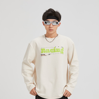 R.Q.G长袖T恤男士春秋纯棉加厚休闲圆领上衣2025新款男装潮流胖子