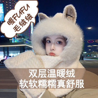 可爱帽子围巾一体女冬季围脖2025爆款连帽护耳女生毛绒保暖脖套冬