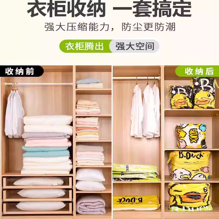 :原价26.9元,现在领取10元优惠券,预估到手16.9元,收纳博士免抽大尺寸排气阀压缩袋5个;券后16.9!收纳博士免抽气小黄鸭真空压缩袋换季衣物棉被羽绒服加厚款收纳袋