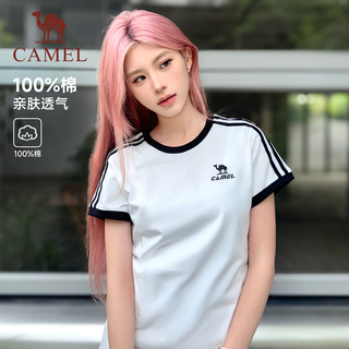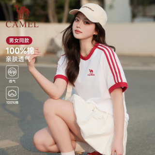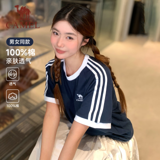 骆驼柔绵T神春夏季棉t恤女短袖圆领情侣复古宽松运动休闲上衣男