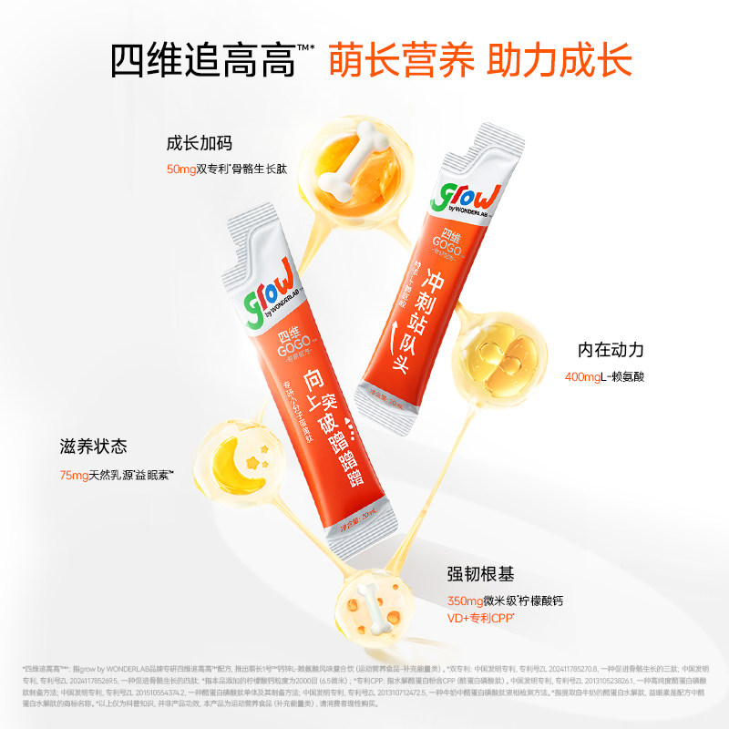 万益蓝WonderLab儿童液体钙萌长1号饮赖氨酸非钙片青少年生长素